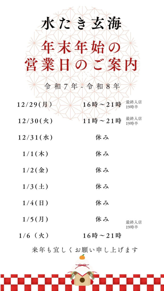 水たき玄海 年末年始営業のお知らせ