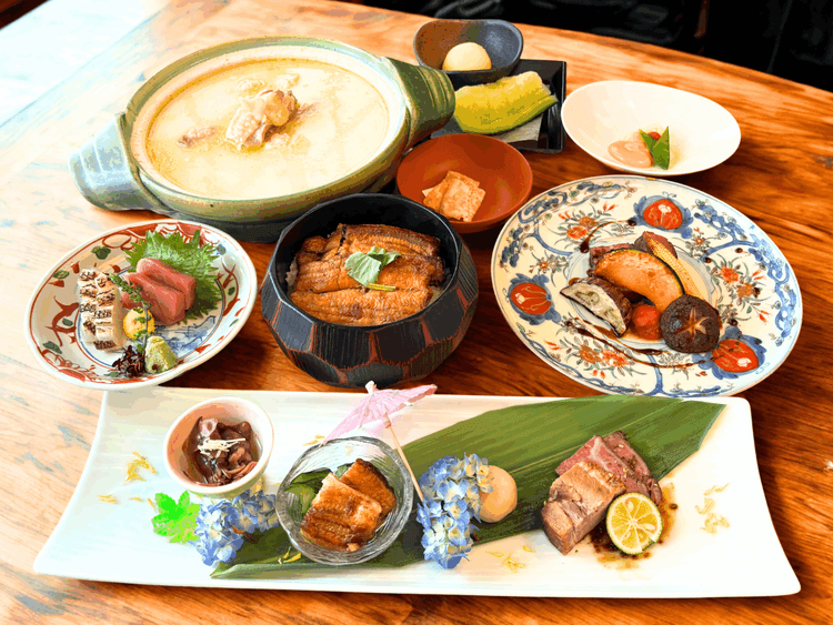◆期間限定~9月29日(日)迄◆「特選うなぎコース」水たき鍋なし 23,000円(税込)/ 水たき鍋あり 25,000円(税込)夏の熱気に紛れて香りが漂ってくると、自然と嬉しさで胸が膨らむ日本のソウルフード「鰻」。玄海の職人が腕によりをかけて、夏いっぱい、鰻づくしの特選コースをお届けいたします。せっかく玄海に行くのだからぜひ水たきも楽しみたいという方も、とにかく鰻を堪能したいという方も、ご満足いただけるよう「鍋あり」「鍋なし」をお選びいただけます。■前菜 うざく 骨唐揚げ 季節のお浸し 鰻香油漬け■お造り 本鮪 季節の白身 栄螺 妻一式■焼き物 鰻の白焼き 岡村牛のかつれつ 香味野菜 焼きダレ柚子胡椒■蓋物 鰻と丸茄子の養老餡 枝豆 海老 花穂■御食事 玄海風ひつまぶし 卵焼き 三つ葉 香の物全5品(水たき鍋なし) 23,000円(税込)全6品(水たき鍋あり) 25,000円(税込)——————————————————————–◎調理の都合上、2日前までの要予約とさせていただいております。◎ご提供期間は9月29日まで。 予約受付時間11時~13時、16時~19時となっております。◎仕入れの状況により献立の内容が一部変更になる場合がございます。予めご了承ください。